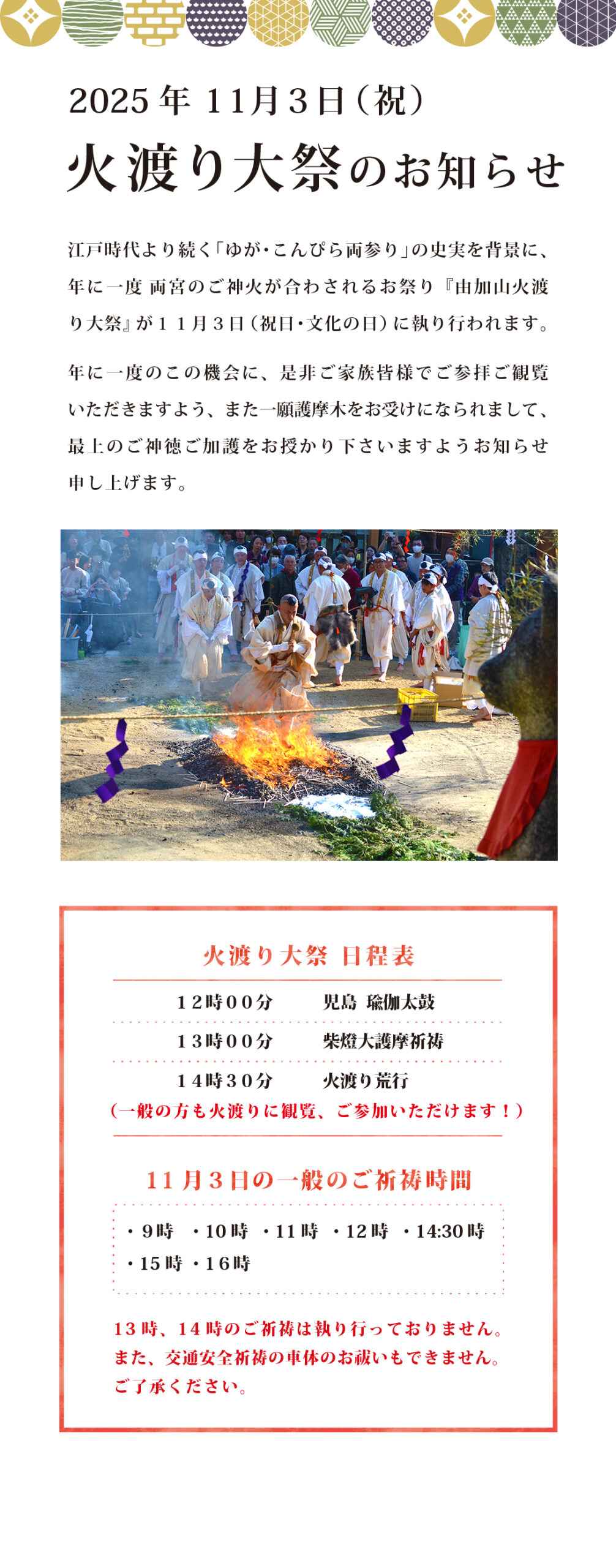 令和7年11月3日(祝) 火渡り大祭のお知らせ