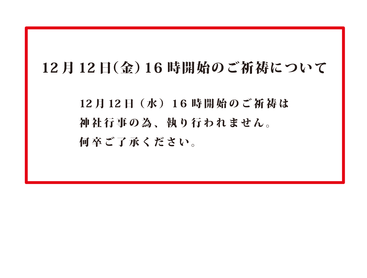 令和7年12月12日(金)16時のご祈祷について