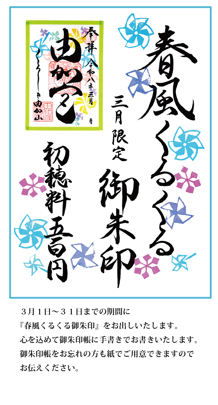 令和8年3月1日より『春風くるくる御朱印』をお出しいたします