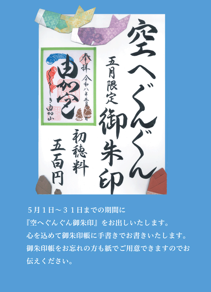 令和8年5月1日より『空へぐんぐん御朱印』をお出しいたします